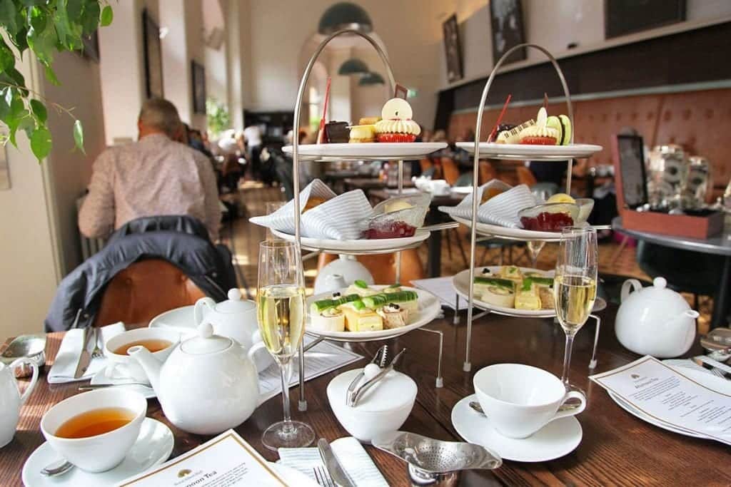 In Engeland is de Afternoon Tea nog steeds heel populair. Tussen 15:00 en 17:00 uur kun je dan ook op diverse plekken in Londen genieten van verschillende soorten thee, geserveerd met hartige en zoete lekkernijen. Op de etagere tref je vaak komkommer sandwiches, scones, macarons en andere gebakjes aan.