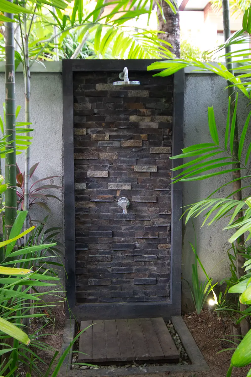 De badkamer in de villa heeft de omvang van een kleine spa, waarin het vrijstaande bad onmiskenbaar de eyecatcher is. Er staat een wasmeubel voor twee personen en een gigantische semi-open regendouche. Er liggen ook heerlijke verzorgingsproducten klaar. Tropisch ruikende douchegel, fijne shampoo en een heerlijk zachte bodylotion. Dit is paradijselijk genieten!
