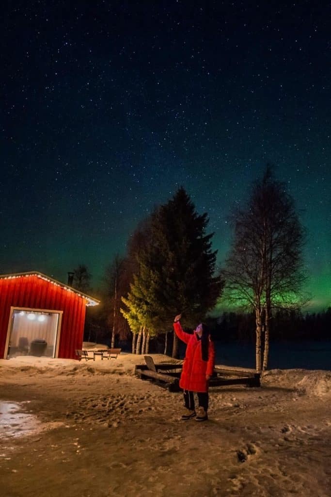 Ook al boek je een zogenoemde “noorderlichtreis”, de zekerheid dat je het noorderlicht gaat zien heb je nooit. Het blijft een kwestie van geluk en geduld hebben. Toch loont het om regelmatig even naar buiten te kijken als het donker is. Tijdens een van mijn reizen door Fins-Lapland gaf de Aurora Now app aan dat er slechts 11% kans was om het noorderlicht waar te nemen. Het noorderlicht was echter in volle glorie voor mijn deur te zien! Staar je dus niet blind op de statistieken en blijf altijd alert bij een heldere hemel.