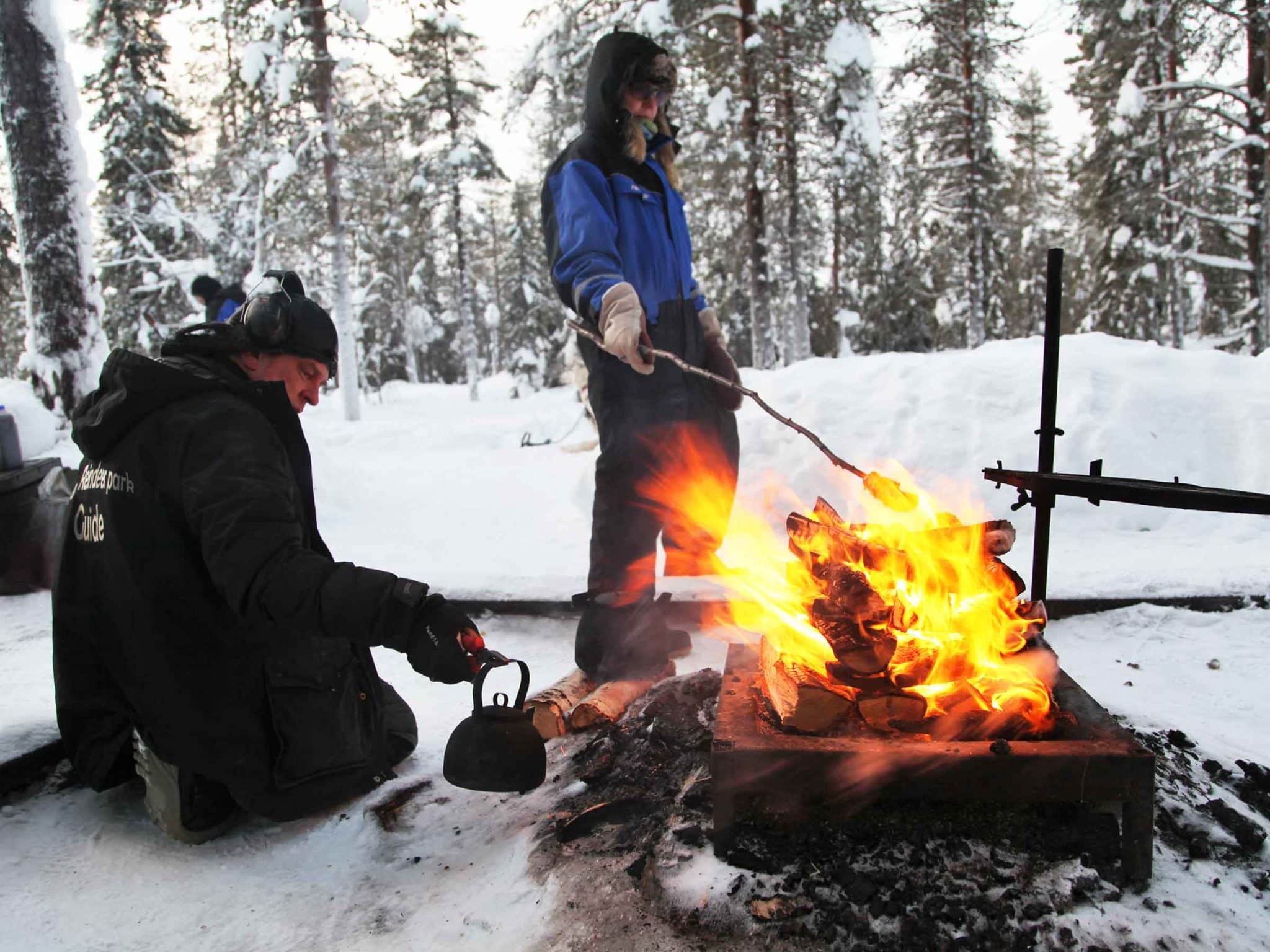 De honden hebben energie voor tien en trekken je moeiteloos door het besneeuwde landschap heen. Halverwege de rit wordt er altijd gestopt voor een korte pauze, zodat de huskies even op adem kunnen komen en wat kunnen drinken (oftewel sneeuwhappen). Tijdens dit pauzemoment worden er meestal worstjes boven een kampvuurtje gegrild en krijg je warme bessensap, koffie of thee aangeboden. Je kunt een dergelijke tour boeken voor 1 uur, 2 uur of een hele dag.