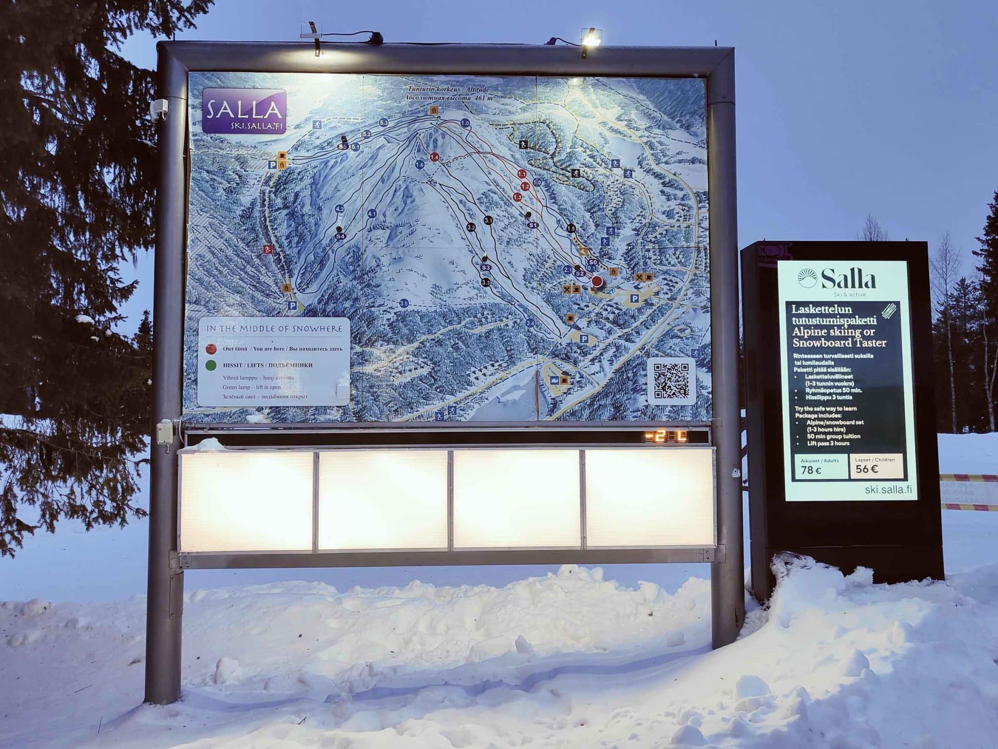 Salla telt slechts 4048 inwoners en het centrum zelf stelt niet zoveel voor. Zo’n 10 kilometer ten zuiden ligt Sallatunturi – het toeristische gebied – waar naast een skibaan ook de meeste accommodaties te vinden zijn. Wanneer men over Salla spreekt wordt dus vaak het kleine skigebied Sallatunturi bedoeld.