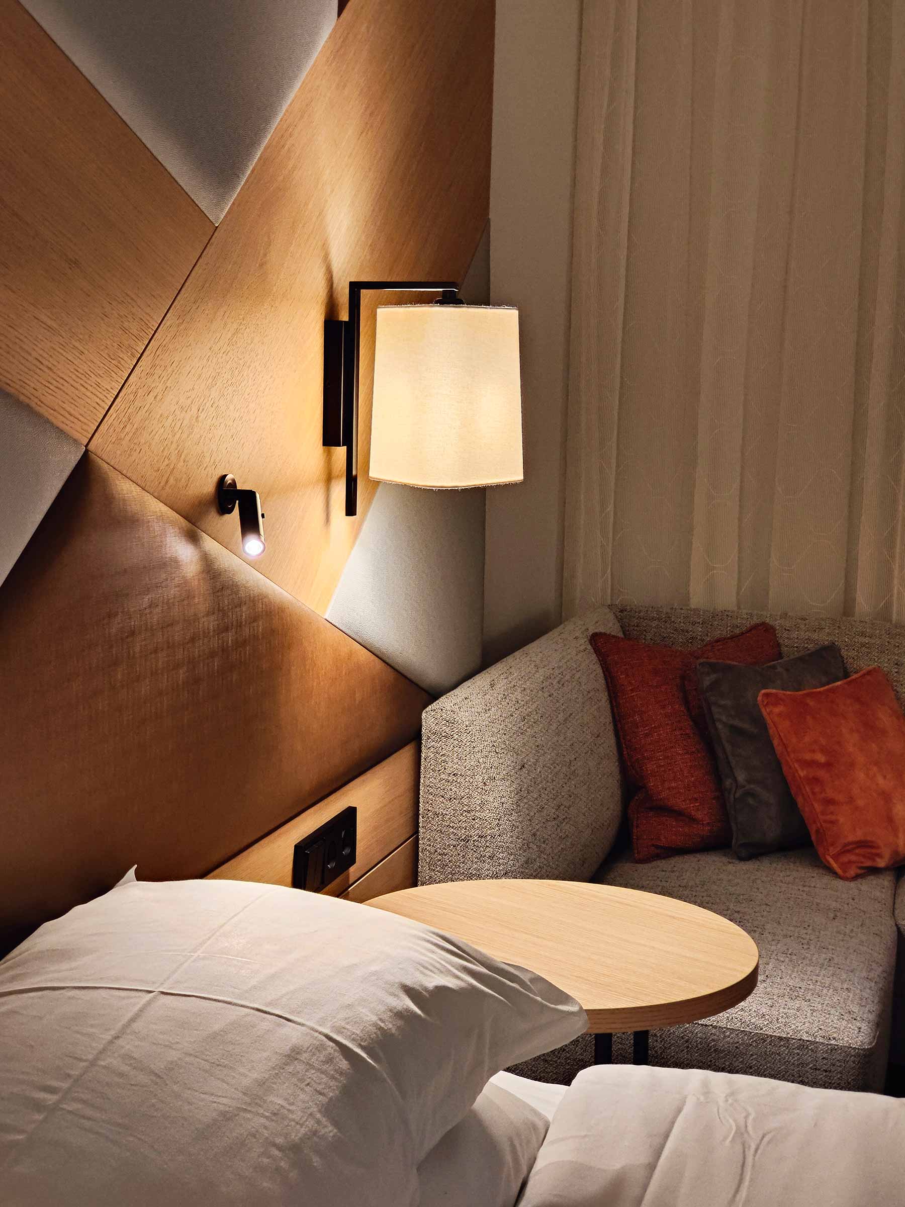 In het hotel kun je bovendien 24/7 roomservice bestellen of gebruik maken van de luxe fitnessruimte. Op alle kamers staat een waterkoker en per verdieping is er een koffiecorner waar je de hele dag gratis koffie en thee kunt pakken. In plaats van een minibar op de kamer staat er ook een automaat waar je drankjes en snack uit kunt vissen. Mocht je toch liever zin hebben in iets anders, dan kun je altijd nog terecht in de lobby market voor iets lekkers.