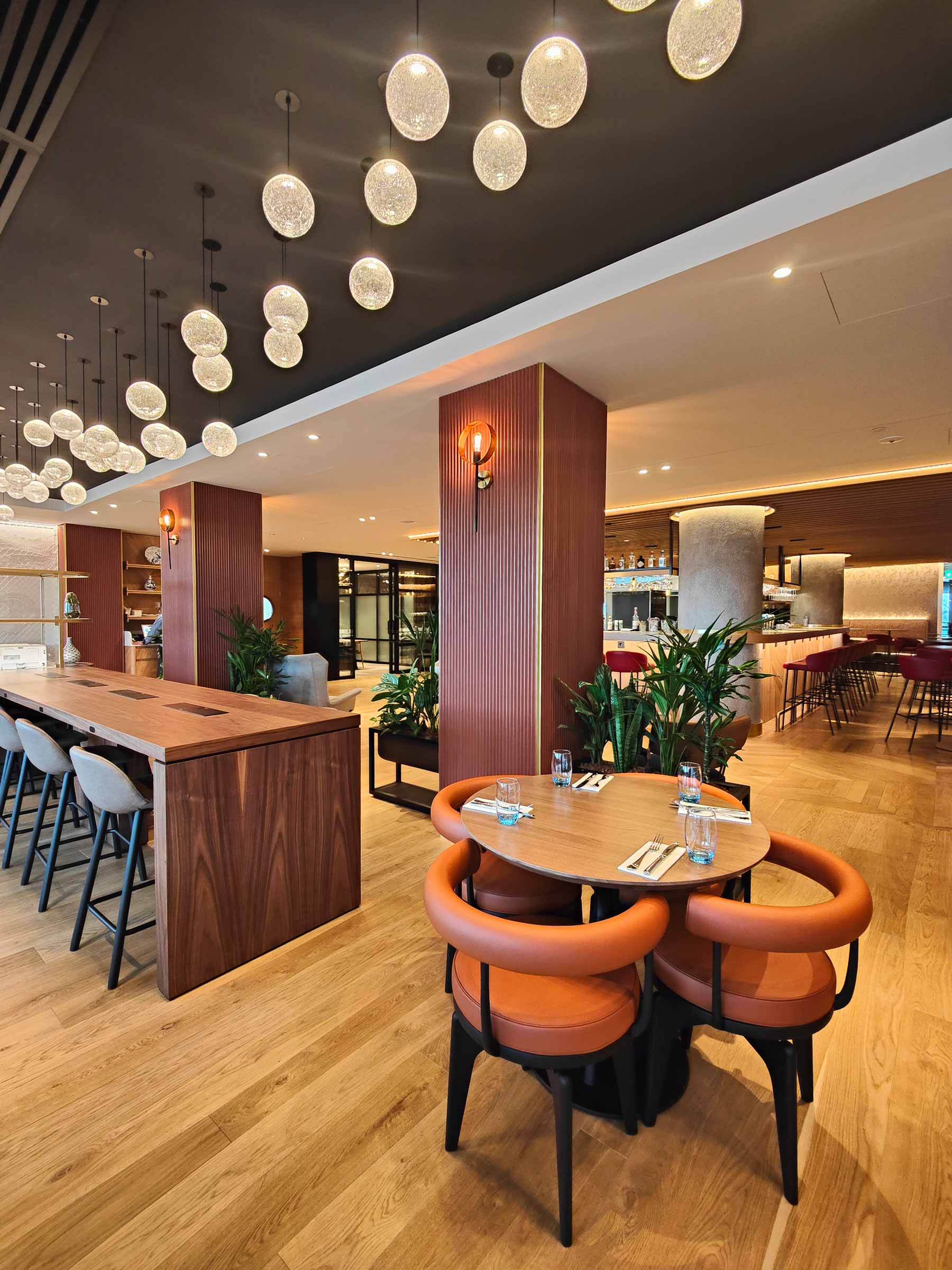 Het gloednieuwe Commune restaurant op de begane grond brengt een all-day dining concept naar Schiphol. Sheraton Amsterdam biedt hiermee een hoogwaardig alternatief voor ontbijt, lunch en diner op de luchthaven. Je kunt er van ’s ochtends 07:00 uur tot ’s avonds 23:00 uur genieten van eigentijdse à la carte gerechten, waaronder veel vegetarische en veganistische opties. Geheel volgens het concept van Commune kun je de meeste gerechten samen delen.