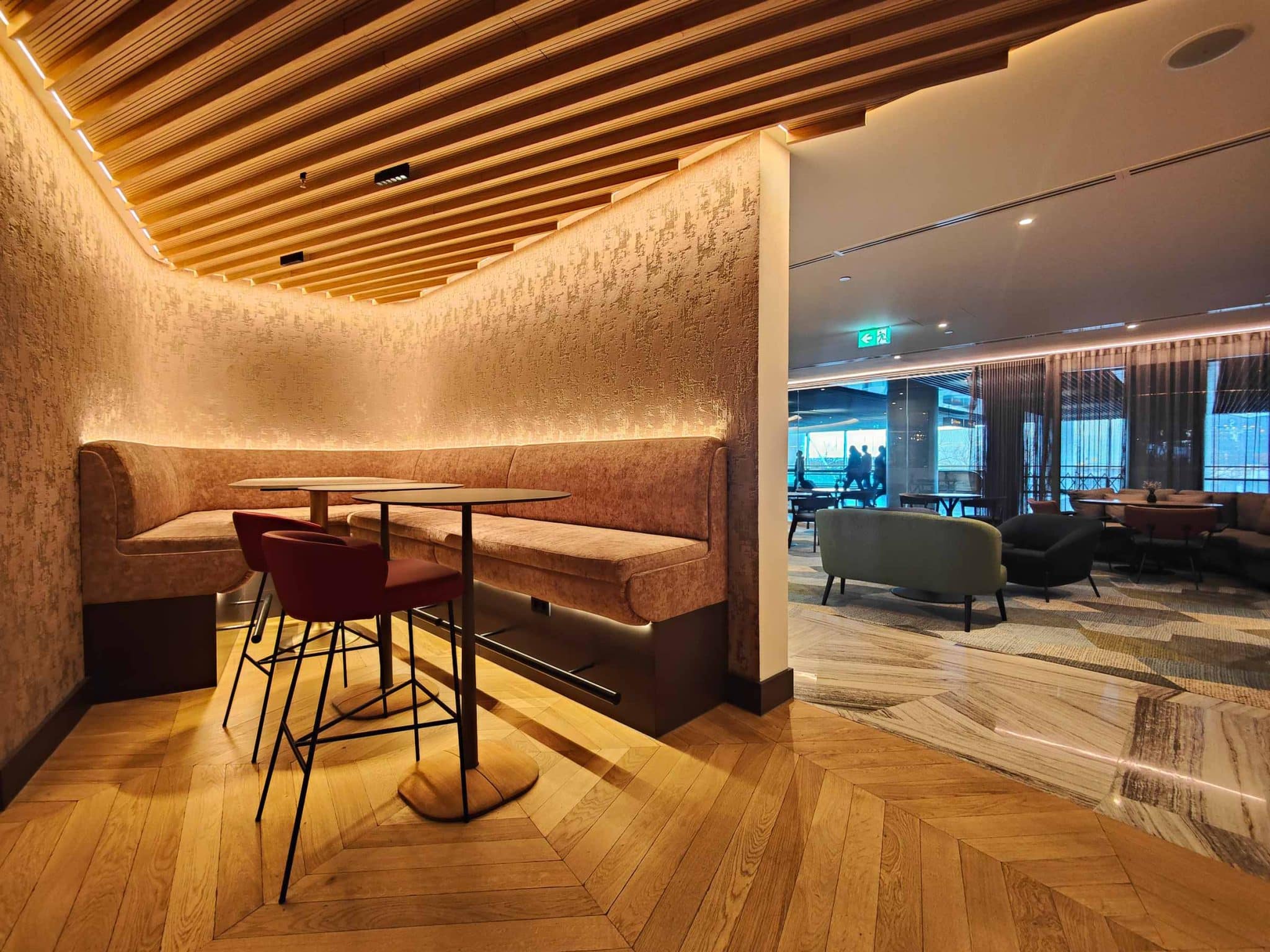 Naast de Sheraton Club Lounge (voor Marriott Bonvoy members) zijn er dus voldoende fijne werkplekken om even je laptop open te klappen. Er zijn ook sfeervolle studio’s die je voor een dagdeel kunt reserveren om je even helemaal terug te trekken voor een Zoom call of een vergadering op de luchthaven.