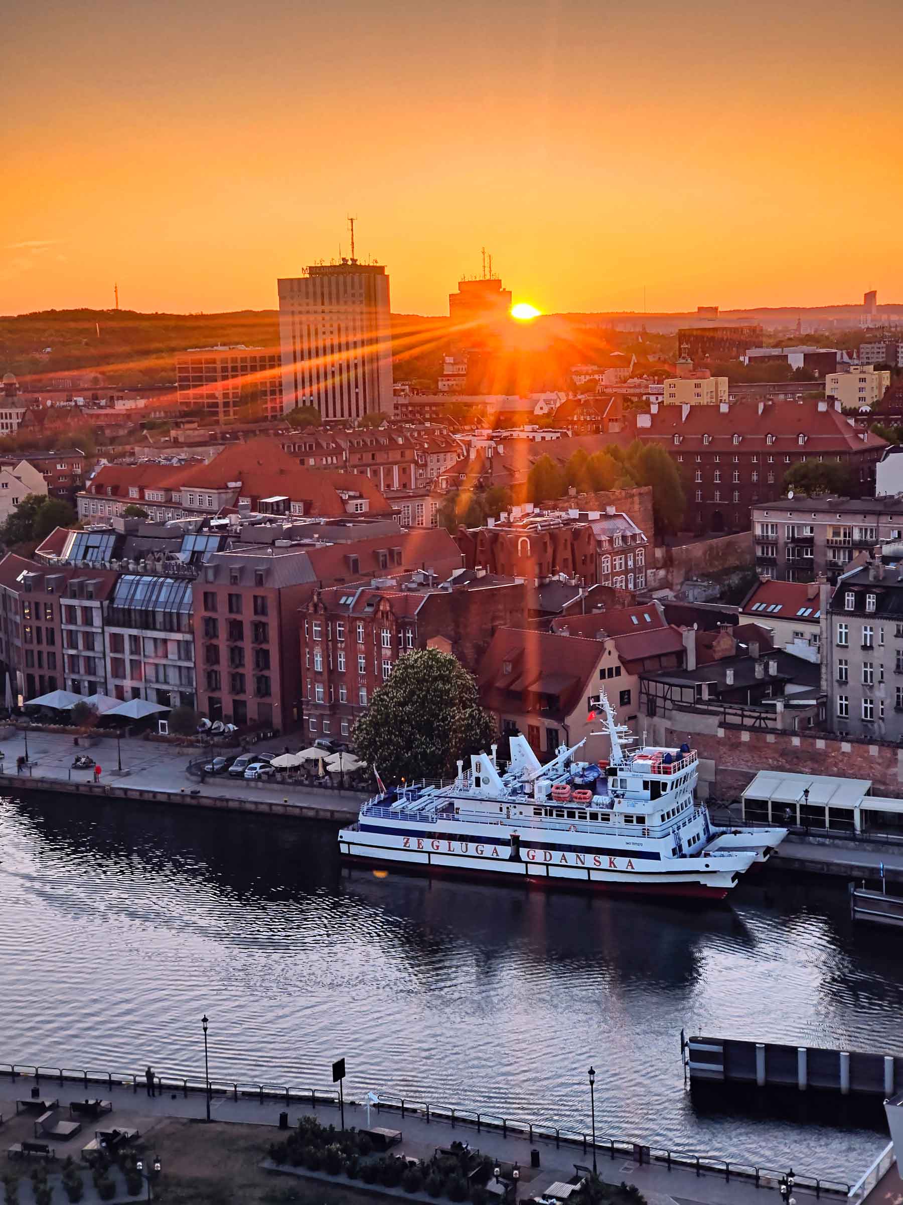 Het centrum van Gdańsk wordt gesplitst door de Motlawa rivier, die uitmond in de Oostzee. Langs de kade vind je veel gezellige restaurants en prachtige oude grachtenpanden. Wanneer de avond valt en de hemel roze kleurt is dit stukje van Gdańsk op haar mooist. Vanuit de cafés klinkt muziek en de fraai verlichte gebouwen maken het extra sfeervol voor een avondwandeling.