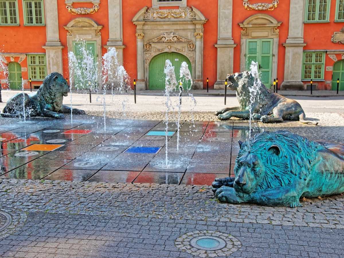 De grootste leeuwen liggen om de hoek van de Mariakerk bij de fontein van de Koninklijke Kapel. Wandel hier in de zomer zeker even langs als je met kleine kinderen de stad bezoekt. Die vinden het namelijk fantastisch om tussen de leeuwen in door het water te rennen.