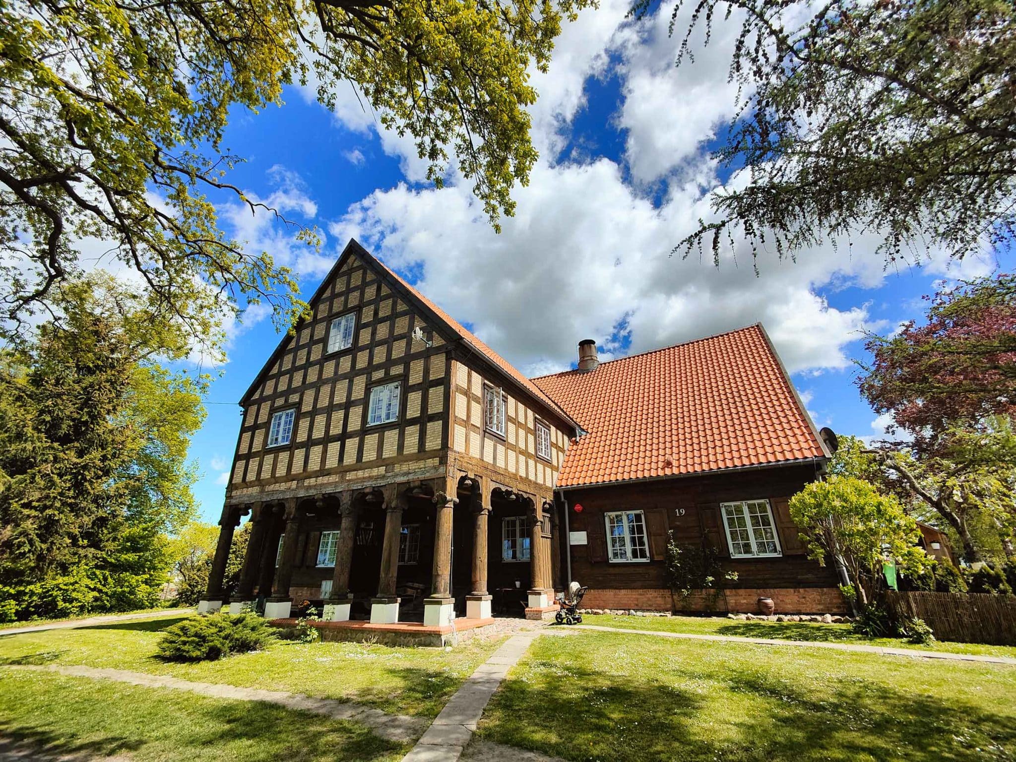 Een leuke stop om aan te meren is Gospoda Mały Holender. Deze oude boerderij is omgetoverd tot een restaurant – al lijkt het van binnen meer op een openluchtmuseum. Hier stap je terug in de tijd en kun je traditionele Poolse gerechten proeven. Ze verkopen er ook lokale jams, likeuren en andere huisgemaakte lekkernijen. In de buurt vind je veel mooie vakwerkhuizen tussen akkers vol knalgele koolzaadbloemen – mits je er natuurlijk in het voorjaar of zomer bent.