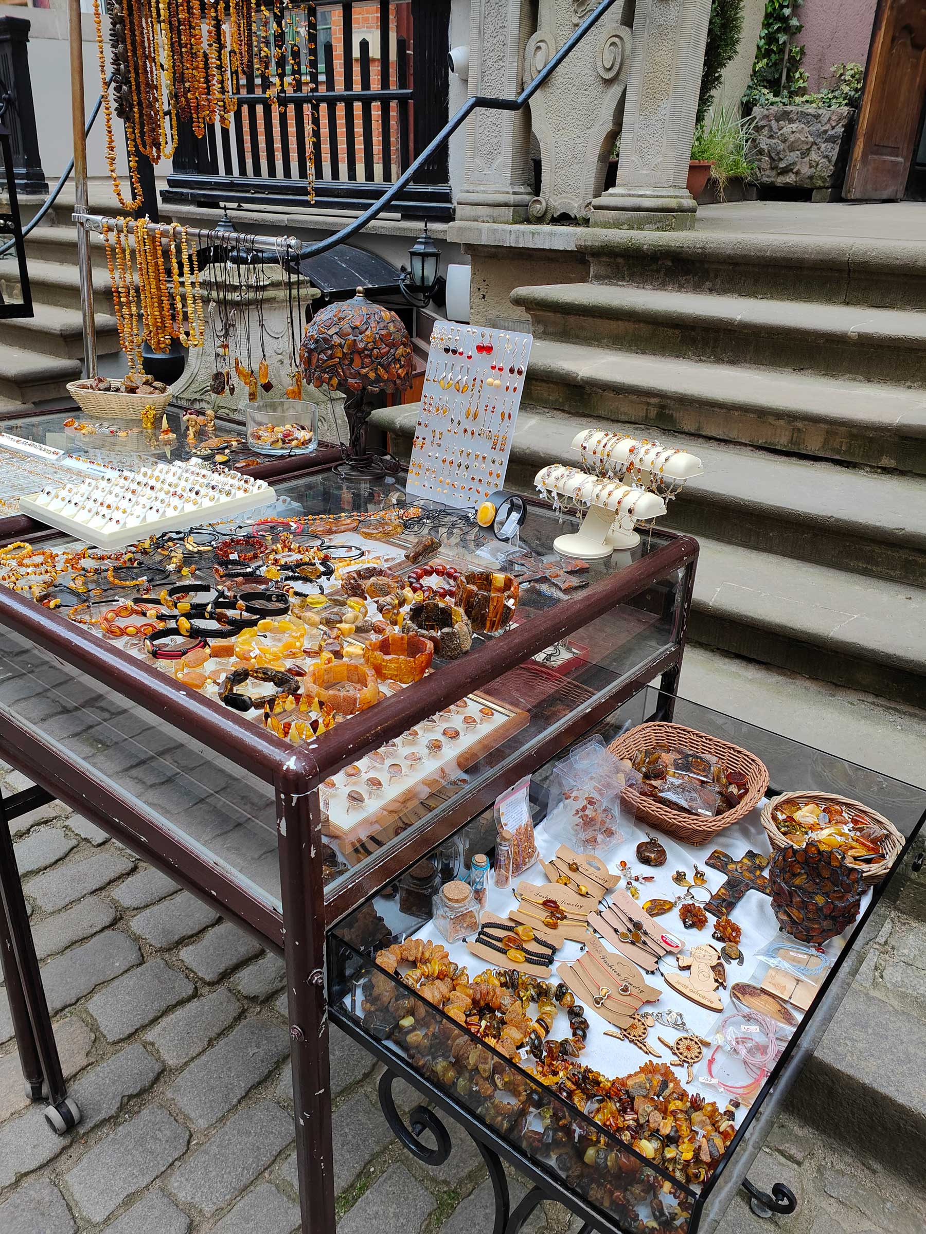 Amber wordt ook wel het Baltische goud genoemd. Dit natuurproduct bestaat uit hars en het spoelt onder andere aan op de Poolse stranden – zoals bijvoorbeeld in het nabijgelegen Sopot. Het wordt in de regio met de hand vervaardigd en in het centrum van Gdańsk vind je talloze juweliers waar ze kettingen, armbanden, oorbellen en ringen van amber verkopen. In Mariacka street presenteren edelsmeden een deel van de collectie in glazen kasten op straat. Het is daardoor een populair straatje voor toeristen die op zoek zijn naar een bijzonder souvenir.